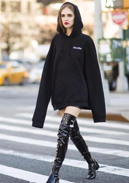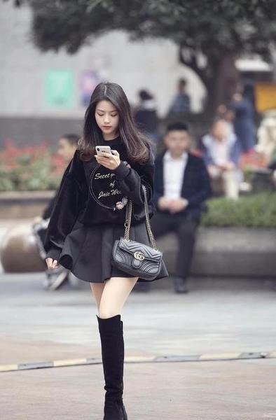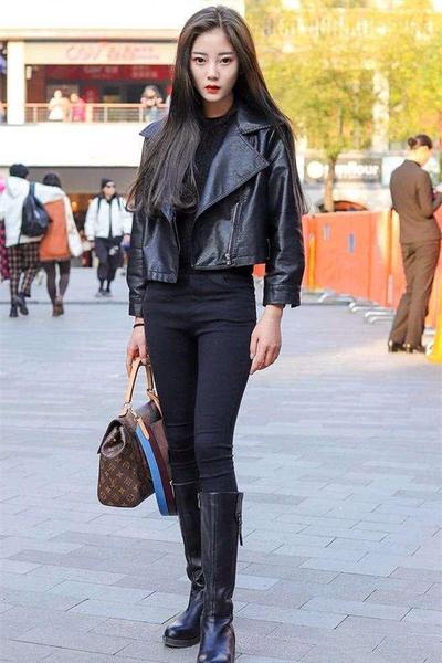下面三张图片模特都是采用同色系搭配的方式,靴子是黑色,衣服也是选用黑色的,这是我们平常的搭配,看得出小姐姐们的身材都很赞,靴子无论是搭配T恤,卫衣,还是皮衣都很好看,而小露一点点的肉又特别性感,要是我的腿瘦就好了,我也好想穿靴子。