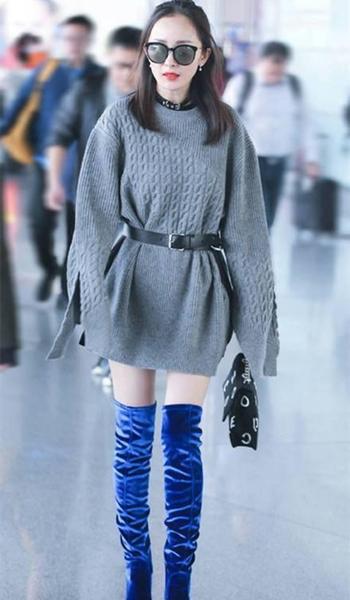 长筒靴要么搭短裤或短裙子,露出一节裤袜。要么搭长款大衣,至小腿肚子以下。要么中长款大衣,里面搭个至小腿肚以下的裙子。