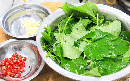 红薯叶经常被人扔掉,但是很多人却不知道的是它含有维生素A,吃红薯叶可以起到补血的目的,而现在正是吃红薯叶的季节。