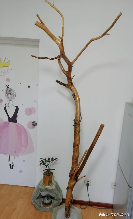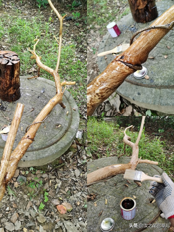 怕日后发霉,所以还是买了清漆,前后刷了两遍,晾干后树体整个晶莹有光泽了,都佩服自己了开始…