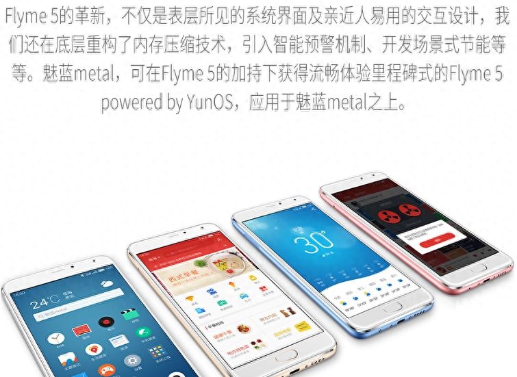这是魅族采用机海战术前发布的一款手机,如果说去年2016魅族的手机有些浮躁,这一款,可以看到魅族的清新,小而美,初心不忘。魅蓝metal,一款采用yunos操作系统的千元机,发布价格1299,现在某宝已降到600多(15年首发1199入手)。朋友说,丝毫看不出廉价感,最大的惊喜是,2G内存却不卡顿,原因在于Yun os的底层设计不同于安卓,类似苹果系统!很多人一看是yun os操作系统,就信誓旦旦不买,我用一年多的使用体验,还原一部绝对超值的百元手机!