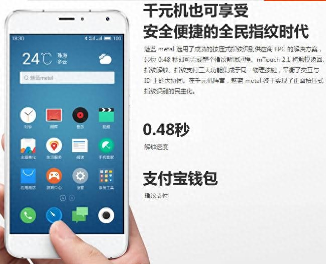 魅蓝系列第一款全金属手机,没有三段式切割,整个机身浑然一体