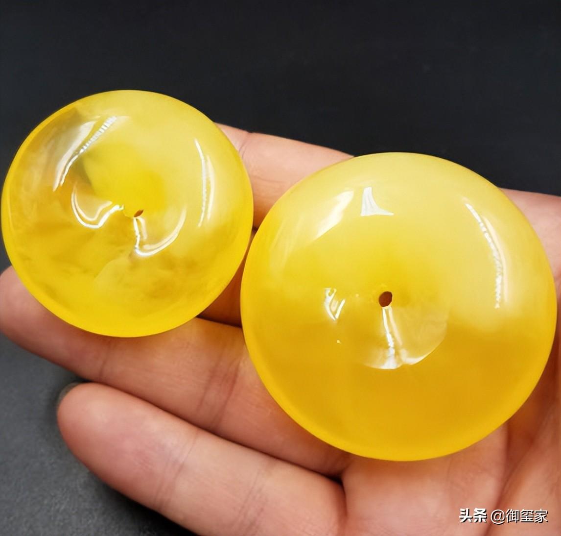 拿到蜜蜡之后,在手上玩两下,看看颜色,真的蜜蜡是不透明的黄色,或者是稍微暗黄色,它的表面细腻有蜡质感,所以才叫为蜜蜡。