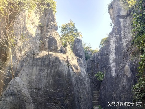 公园主要是由两片石林景区组成,一线天、石林飞瀑、滴水观音、金蟾献宝等景点。