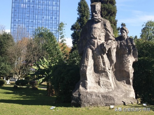 两位石雕像,一位是阳明,这里是阳明草堂,公园内还有阳明书院。