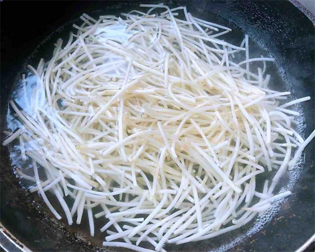 第五步下入肉片。在下入肉片之前,我们还可以向其中加入一些辣椒面或者是辣椒油,喜欢吃辣的人还可以多放一些干辣椒,或者是火锅底料。然后我们向火锅中加入肉片,用筷子将肉片搅散开,肉片烧开后就可以装盘,在盘底放入煮好的豆芽,浇上制作好的水煮肉片即可,这样美味鲜香的水煮肉片就制作完成了。