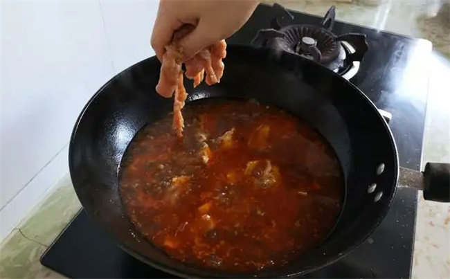 第四步起锅烧油。油锅烧热后,下入一定量的油,油热后倒入准备好的葱姜蒜,以及干辣椒和八角,同时,也可以向其中倒入一些豆瓣酱调香,翻炒均匀,直到油锅中炒出香味。然后我们向锅中加入一碗清水,以及少许的生抽。