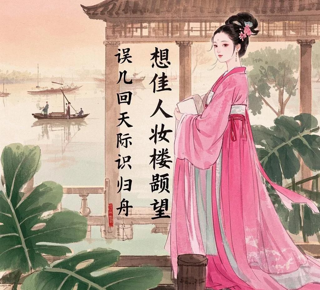 想佳人妆楼颙望,误几回、天际识归舟。