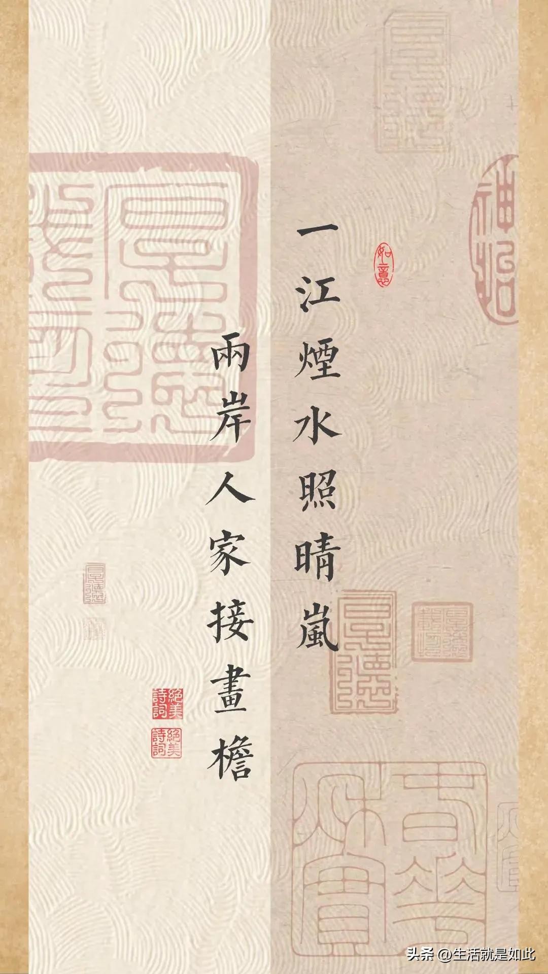 江水如镜,映照着晴日的山岚,烟雨轻笼,朦胧如画。两岸的人家,屋檐错落,似是画中之景,与这烟水天地交相辉映。这一幕,是江南的静,是烟雨的柔,是水乡人家的诗意生活。