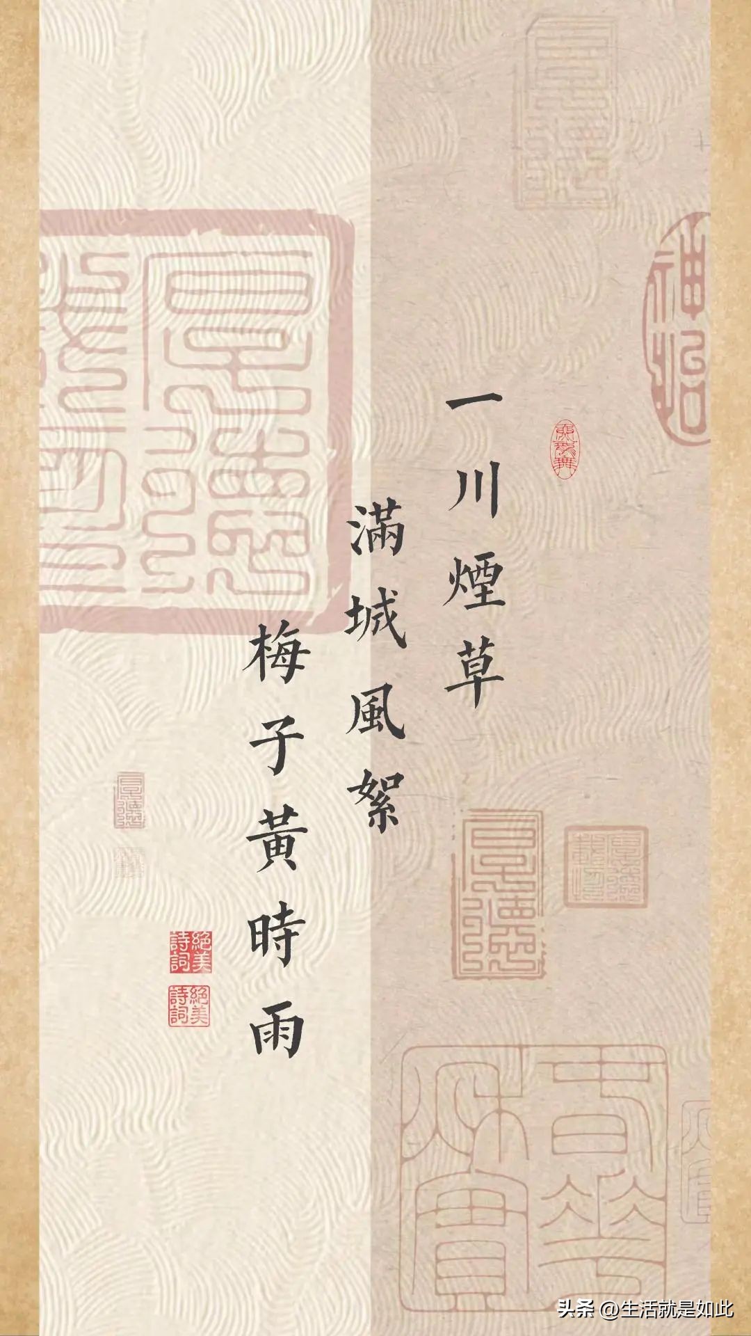 烟草漫漫,随风飘摇,城中柳絮飞舞,似雪非雪。梅子渐黄,细雨霏霏,整个江南弥漫着挥之不去的愁绪。这是一种带着离愁的画面,雨打梅黄,风卷柳絮,仿佛心事也在这烟雨中飘摇不定。