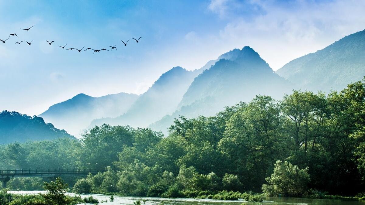 29、江流天地外,山色有无中。——唐·王维《汉江临眺》