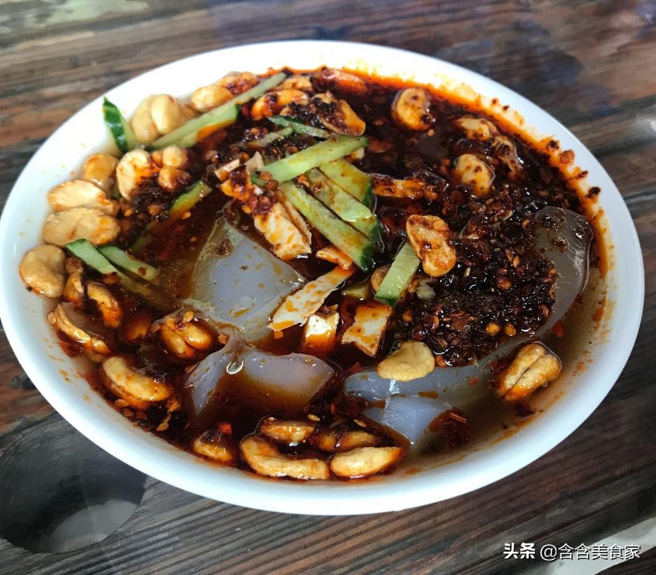 浑源凉粉是山西省大同市浑源县一道特色小吃,凉粉主要是土豆粉和矾加工而成,调味酸辣,上面有豆干与蚕豆。普通的凉粉一般是用绿豆淀粉制作,小编我问过许多摊主,据说还有用豌豆粉做,一般成型都像一个倒扣的大脸盆,然后用带眼的刮刀一圈一圈将粉刮成条状,再调味,是浓浓夏日,餐桌上必不可少的美味。