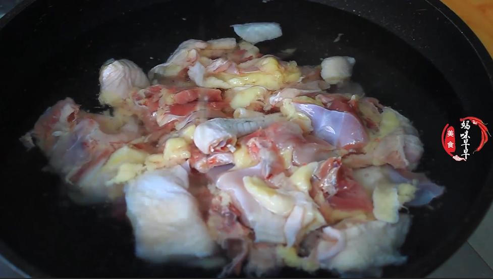 第三步,洗净的鸡肉冷水下锅,加入适量的料酒,搅拌均匀后大火煮开,煮出血沫之后捞出再冲洗干净。