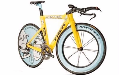 4、Trek Yoshitomo Nara Speed Concept 售价:20万美元(137万人民币)。TREK奈良美智速度概念自行车,由TREK公司开发,并由著名的日本流行艺术家奈良美智装饰。整车以轻松活泼的海通卡通形象,传递提升人们的抗癌意识的深刻主题。作为骑行赛车,这辆车身由碳纤维制成,重量轻且速度快。在2009年的苏富比慈善拍卖会上以20万美元的高价售出。到现在为止依然有很多人认为TREK奈良美智速度概念自行车是世界上最快的计时自行车。