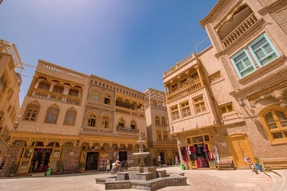 团城民族风情街,是和田比较有南疆风情的街道,漫步团城街头,映入眼帘的仿佛是喀什噶尔古城中的街巷,分布着南疆西域风情的建筑,让人仿佛置身在国外,这里也是和田有名的网红打卡景点。