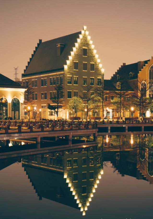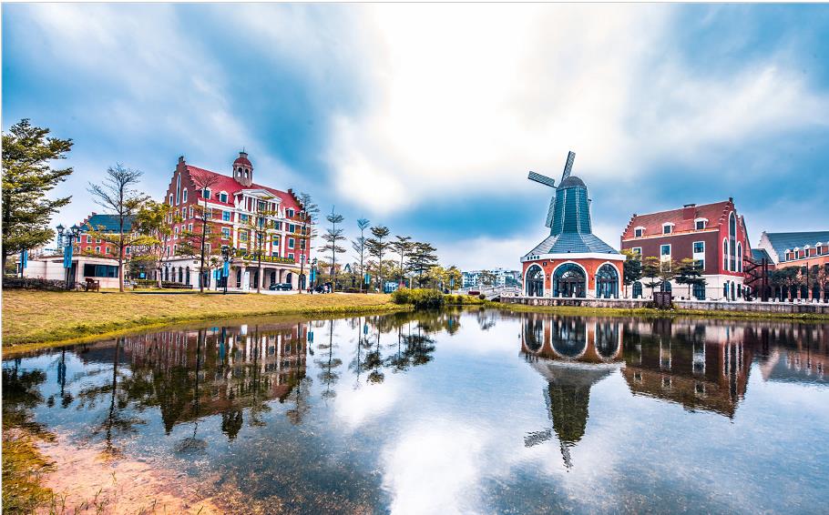 小镇采用了欧洲的5个不同时期和不同类型的建筑风格,红白的方格墙、长拱形的窗户、哥特式的屋顶、还有高调的宝塔,散发出欧洲的浪漫气息,让人瞬间停下脚步,仿佛置身欧洲街头的错觉感。还有童话世界里的白色风车,每个片段角落都能轻松构图,随手一拍就是时尚大片的即视感。