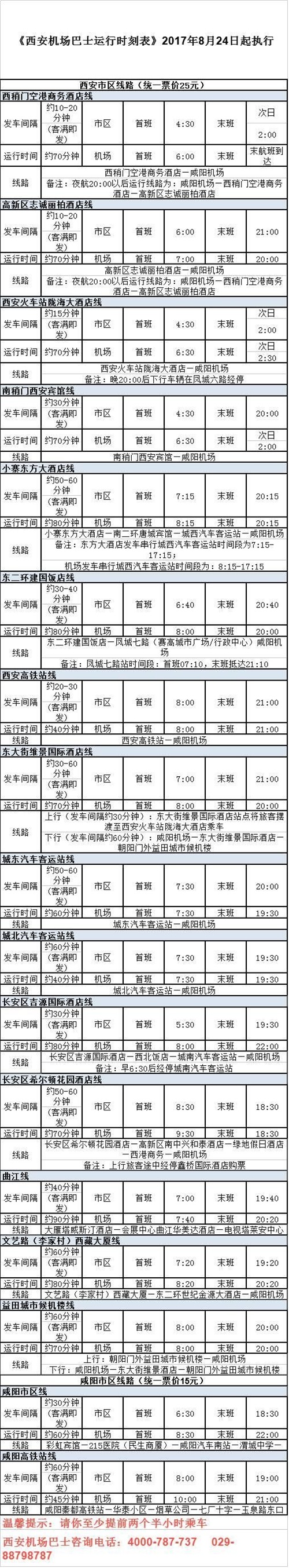 西稍门空港商务酒店、火车站陇海大酒店、南稍门西安宾馆三处机场巴士站点的首班车已提前至凌晨4点半。