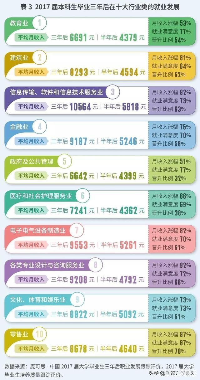 根据麦可斯发布的2025年十大行业类就业发展调查报告,本科生毕业后半年和三年的平均收入数据: