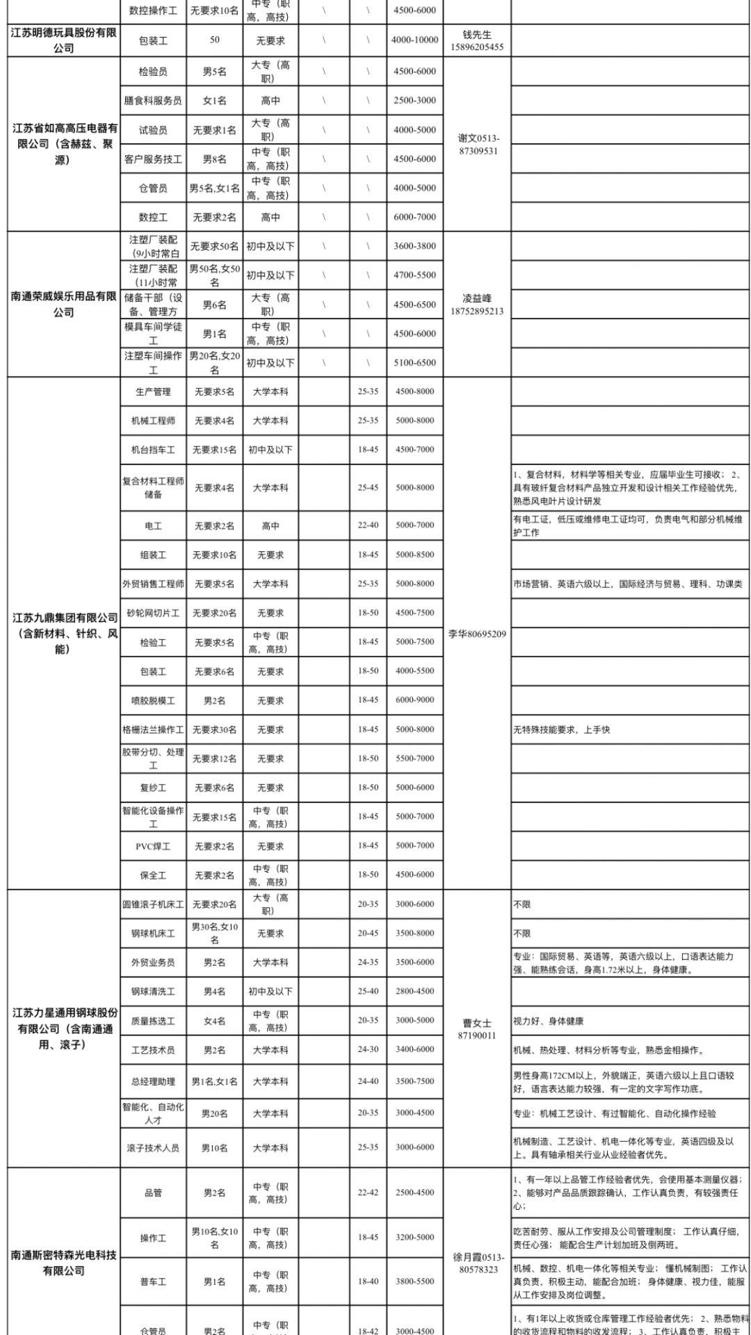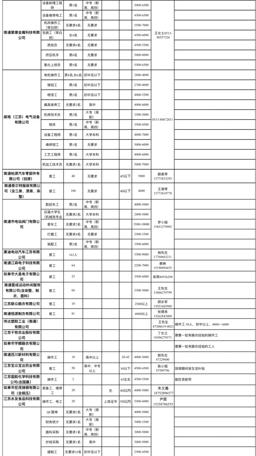 招聘战“疫” ,如皋时刻在线!附如皋重点企业岗位信息一览表~