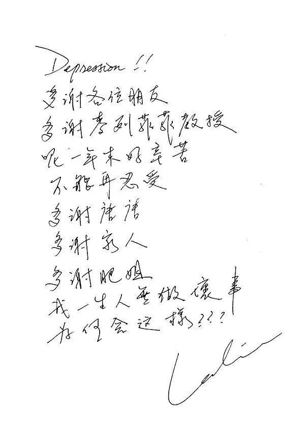 在坠楼前,他在写下的纸条中说:“Depression,多谢各位朋友,多谢麦列菲菲教授。这一年来很辛苦,不能再忍受,多谢唐先生,多谢家人,多谢肥姐。我一生没做坏事,为何这样?”