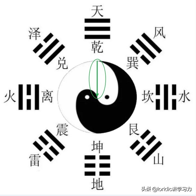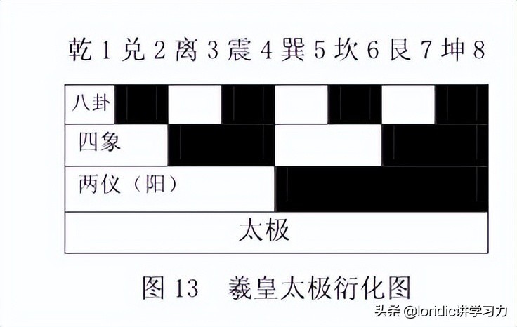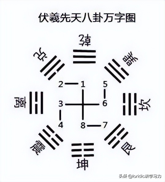 符合:太极生两仪,两仪生四象,四象生八卦的卦辞,我们来看看图解: