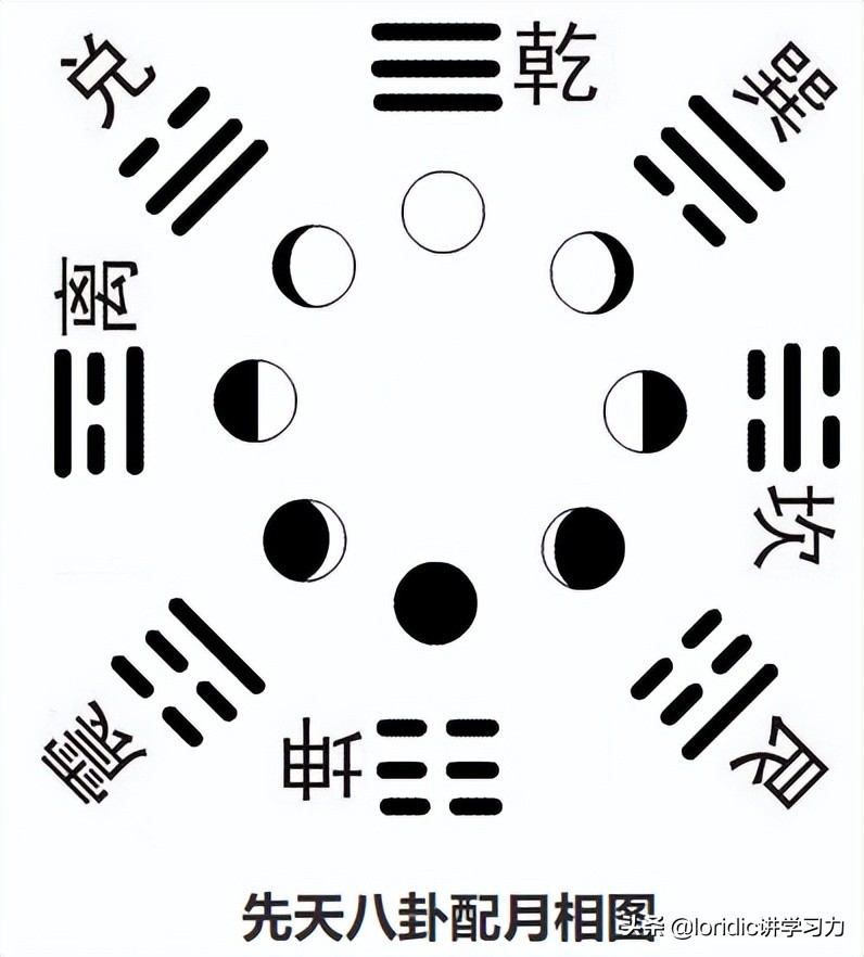 怎么样,先天八卦是不是跟月相完美对应。所以,先天八卦的卦位摆放确实不是杜撰,而是有其科学性的。