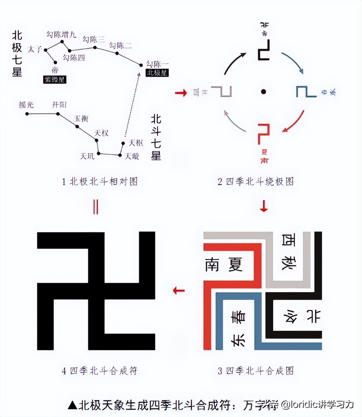 学习了这么多天,终于搞清楚了(暂时没有疑问了)先天八卦太极图的正确画法和跟日升月落、四季、月相、河图、洛书、北斗星、万字符等关系了。