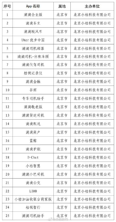 5、7月4日,网信办下架滴滴出行app。几日后,7月10日,滴滴企业版APP又因严重违规被下架,同时下架了北京小桔科技有限公司包括滴滴顺风车在内的25款APP。
