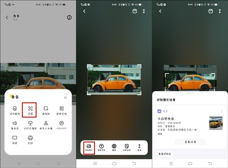 我们将需要识别的物品拍下来,然后保存到手机相册,找到图片,点击【识图】-【识别图片】即可看到识别的结果。