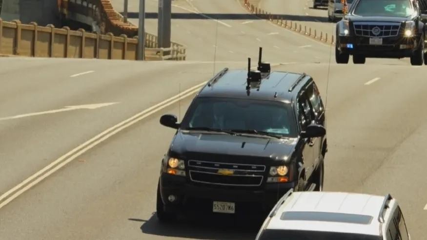 除此之外,在总统座驾的后方,紧跟着一辆电子干扰车,他的车顶有两条距离大的天线可以发射大范围无线电波来阻止任何远程遥控炸弹等远程遥控引爆装置。而且车顶的传感器还能感应到是否有受到火箭弹的攻击,如果检测到危险,会马上释放烟雾弹,将周围车辆包裹住,以求脱离危险。