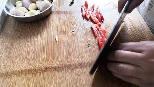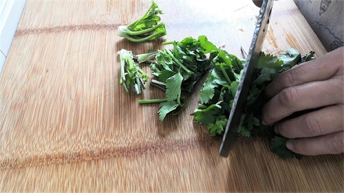2.香菜和红辣椒洗净,生姜切片,葱和香菜切段,红葱头一切为二,红辣椒切片