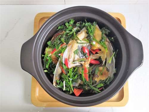 鱼头的营养价值很高,鱼肉鲜嫩,其烹饪方法有很多,如煲汤、红烧、炖等等。今天给大家介绍一道“砂锅鱼头煲”,这是一道粤菜系的经典家常大菜,寓意鸿运当头,在广东常作为宴请宾客的年菜,食材在砂锅里啫啫作响,香味蔓延开来,热气腾腾地端上桌,更能给年夜饭的餐桌平添几分热烈的气氛。成菜酱香浓郁,嫩滑入味,咸鲜回甜,鲜香爽口。