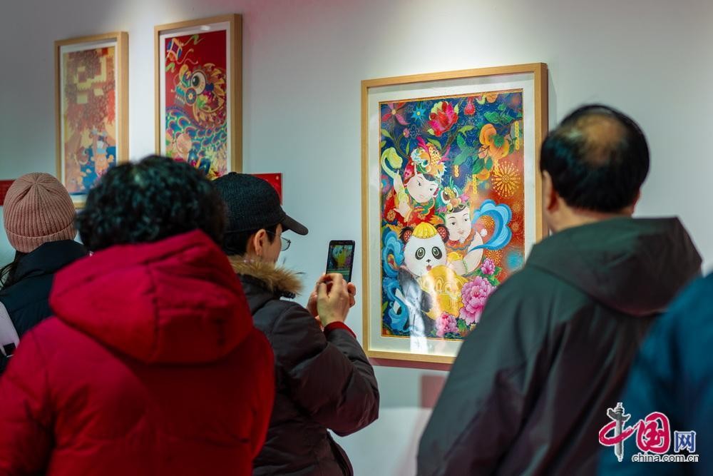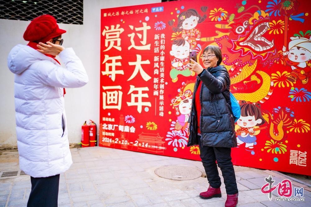 2月11日,游客在厂甸庙会上参观年画展。中国网记者 郑亮摄