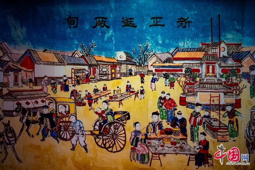 2月11日,北京厂甸庙会上的展示的老庙会场景年画。中国网记者 郑亮摄