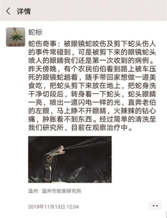 但就在他砍断蛇头的时候,这条蛇竟然活了过来,还凶猛地朝着他喷射毒液,这位老人躲闪不及,眼睛中了招,如果不是送医及时,可能也会造成无法挽回的后果。