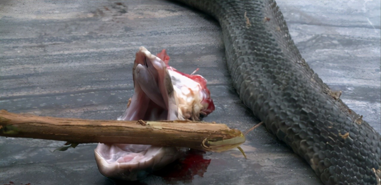 他把蛇头砍下来之后,便开始着手去蛇皮,这个过程当中并没有出现任何异常,意外发生在他丢掉蛇头的时候。