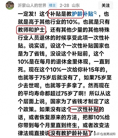 这个补贴是教护龄补贴,也就是高于其他行业的10%。也就是只有教师和护士,还有其他少量的其他特殊行业人员退休的时候享受此项一次性补贴。……或者改变法律法规直接说没有教护龄补贴了!