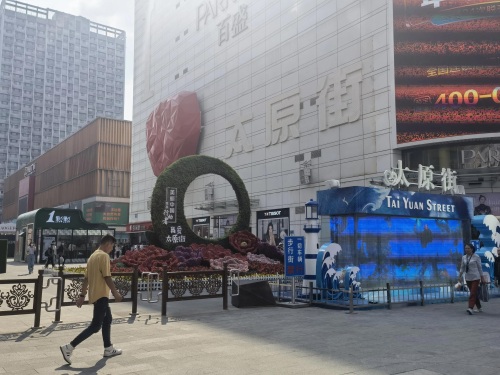 太原街北起中山路,南至民主广场,全长3950米,到现在有120年的历史了,它的建筑风格在进入新世纪以后,是完全仿照日本东京银座商业区的规划模式改造而成的。