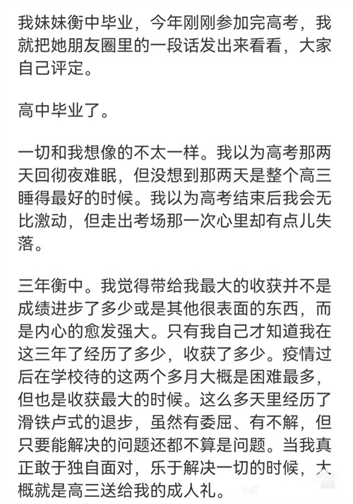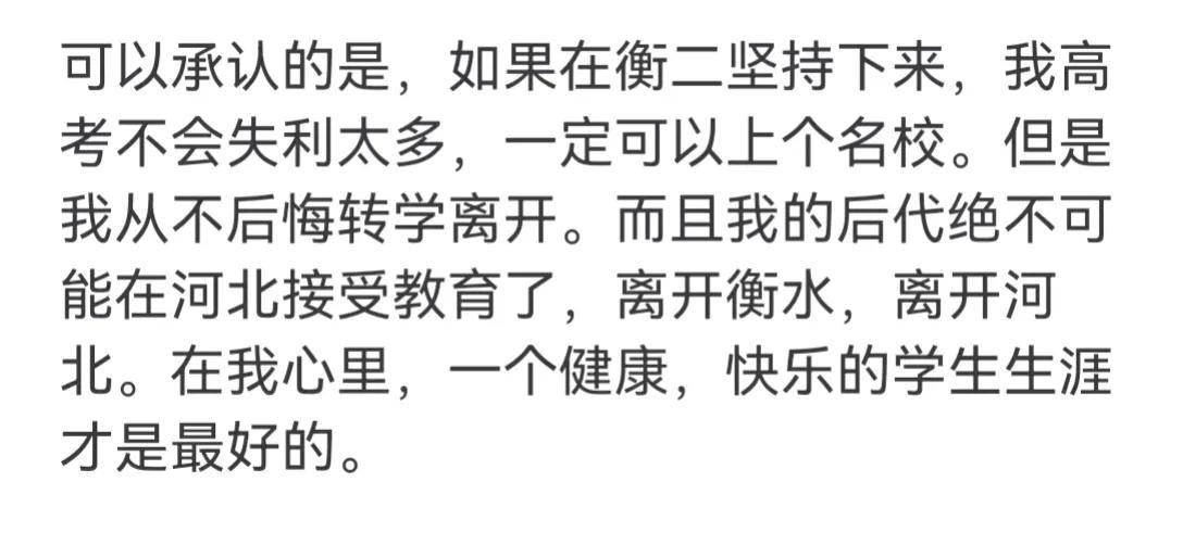 但是我想要说,即使是这样,我们还是需要一个健康阳光的高中生活,如果都像衡水这边的模式一样,不敢保证我们的学生以后会有什么样的问题!