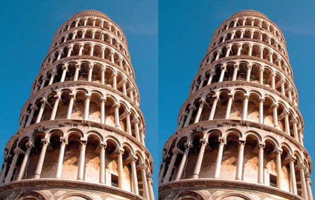 7、右边的这个比萨斜斜塔看起来似乎更加向右倾斜,但事实上它们是平行的。