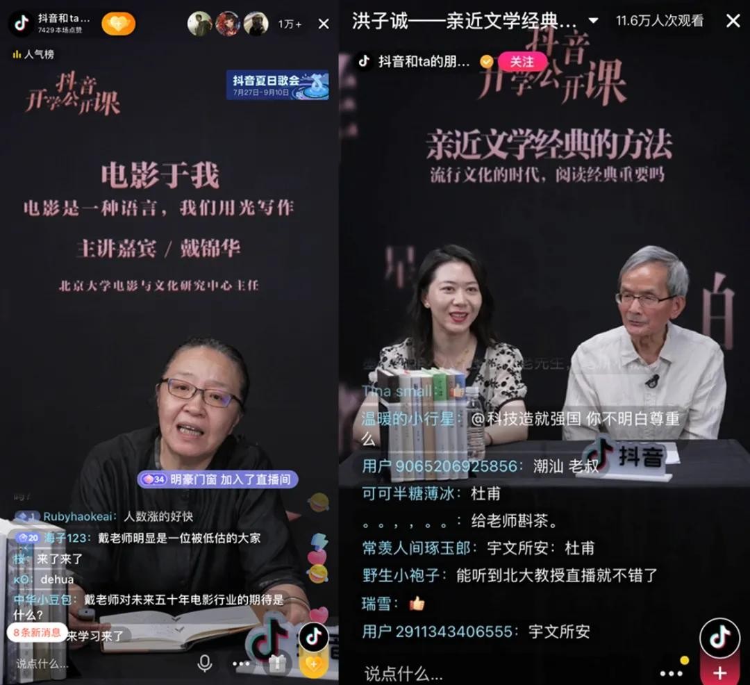 每场十数万人听课,这是什么概念?我知道,这些名教授在大学的讲座都是一座难求,就拿戴锦华教授来说,在北大教室的讲座,大教室的容量不过两三百人,12万人,是400多场线下讲座的人数总和。不仅是直播本身,还有直播延伸的网络讨论,比如戴老师贡献的微博热搜“北大教授称不能让流量主导文化生产”,知乎热搜“北大教授关于剧透最不可饶恕的观点你认同吗”,让更多人参与到课程中。互联网是个海洋,无远弗届,让大学没有了围墙,普通人能畅游在知识思想的海洋中。