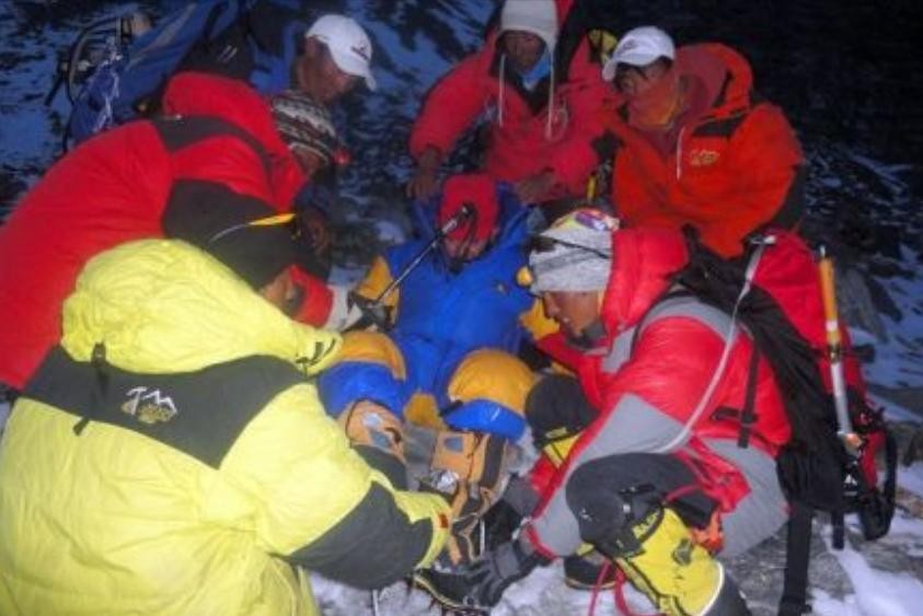 到中午时分,登山队员一直攀登到了海拔6470米的地方,距离最后的历史时刻只剩下了不到270米的距离,平日里嘈杂的对讲机此刻也是静悄悄的,大家都在等待最后登顶时刻的到来,但就在所有人都认为胜利在望之时,意外却陡然发生,山顶的天气突然发生了变化,狂风怒卷,暴风雨也是接踵而来,雪块如同石粒一般砸在了登山队员的脸上。