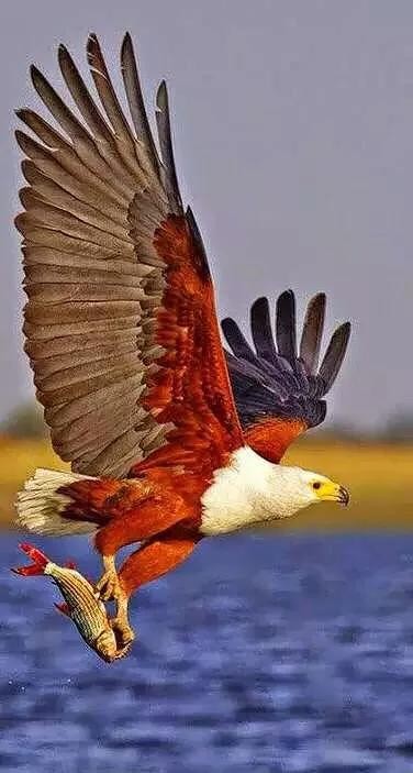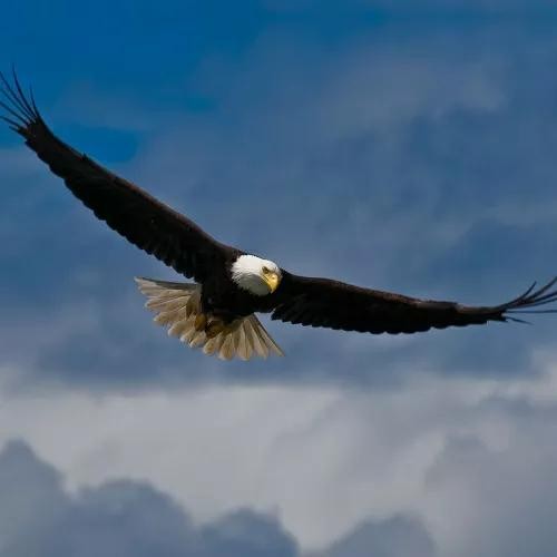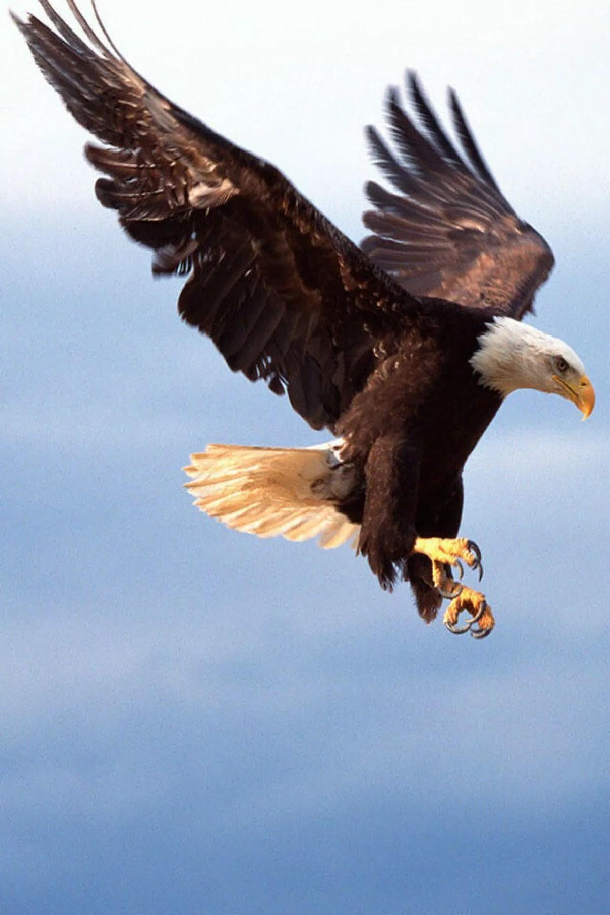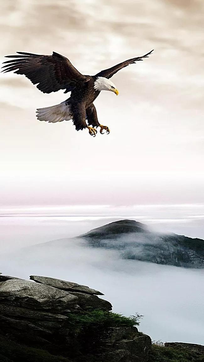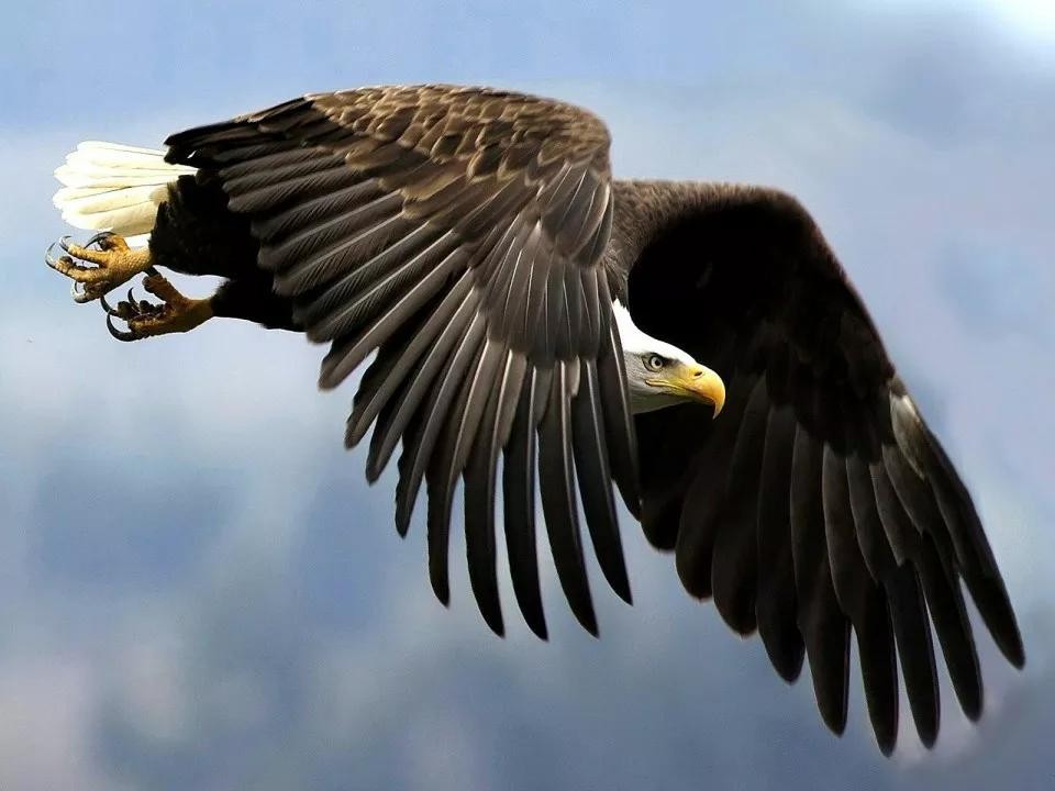 雄鹰在蓝天白云中展翅飞翔,搏击长空。