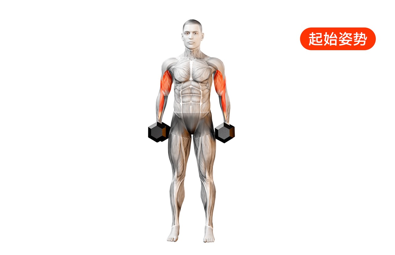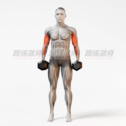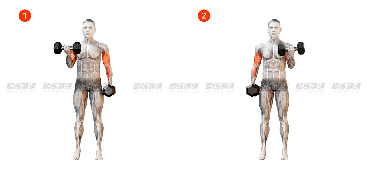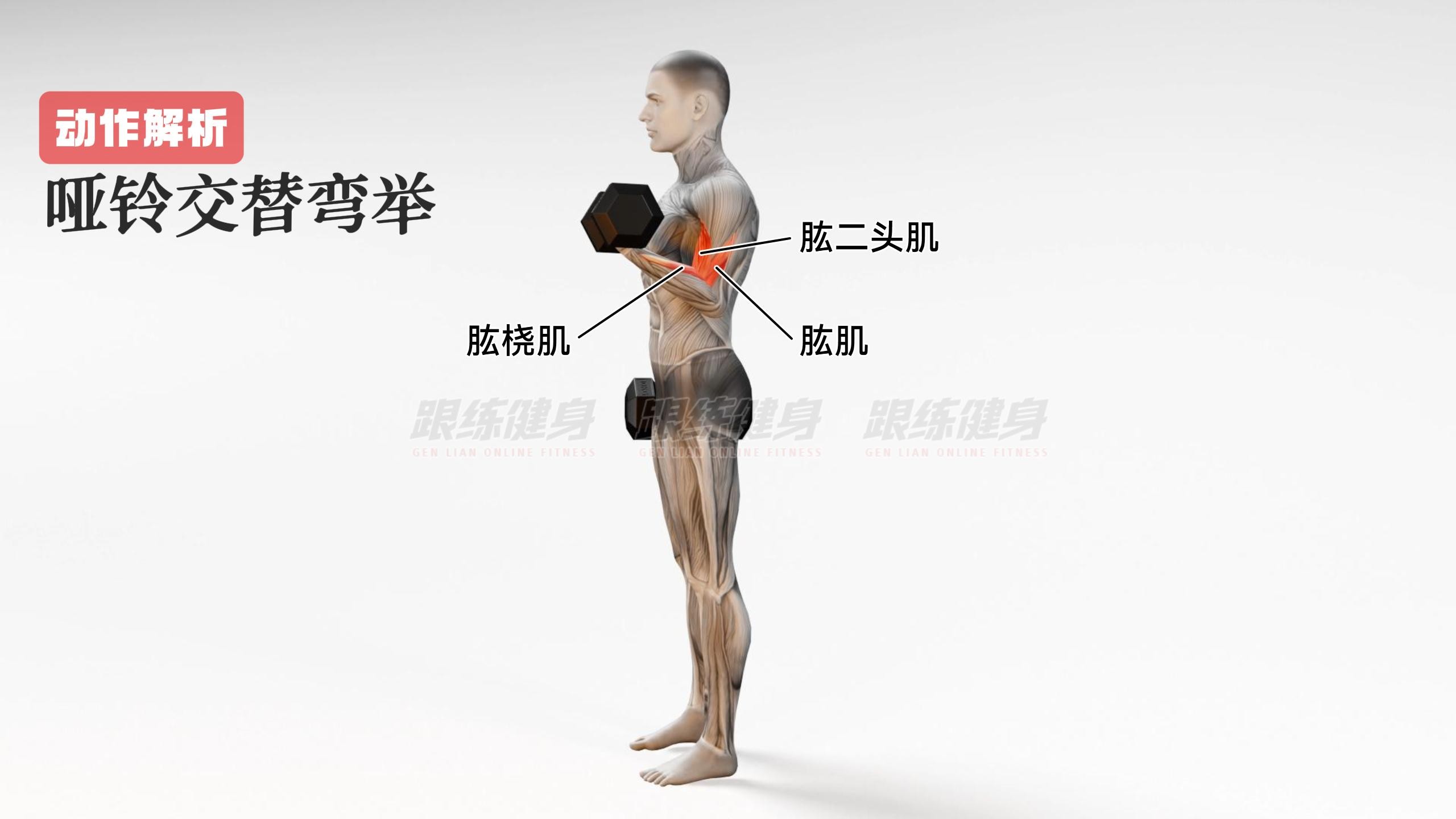 哑铃交替弯举也允许进行单侧手臂训练,纠正左右手臂肌肉失衡的现象,适合各种健身水平的人。