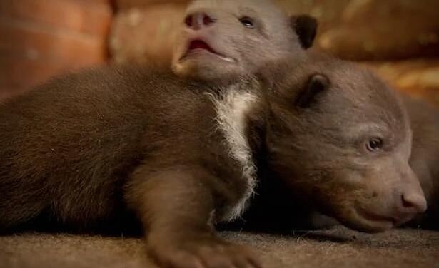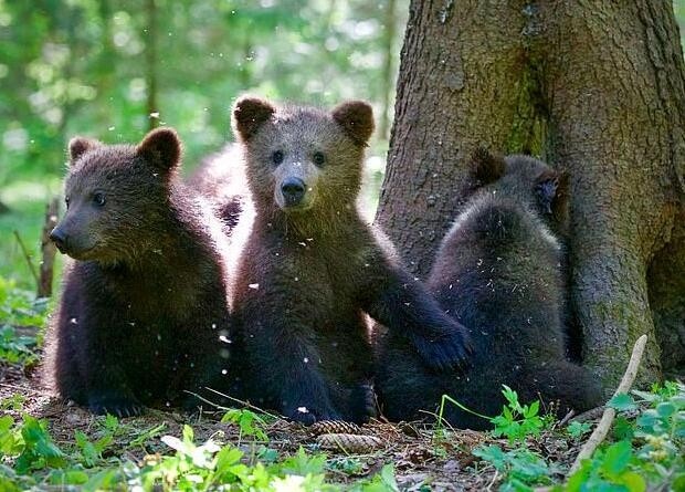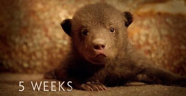 除此之外,Buchanan还教它们爬树和觅食,并把整个过程用镜头记录了下来。小灰熊们在树林里玩耍,从碗里喝粥,长得越来越壮。