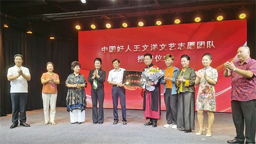 新乡市委宣传部一级调研员张牧童为王文洋文艺志愿团队授牌。王文洋表示,他将以文艺志愿者的身份继续为广大群众服务,用艺术的形式诠释生活中的真善美,义务在全市、全省乃至全国演出、讲座,弘扬民族文化。