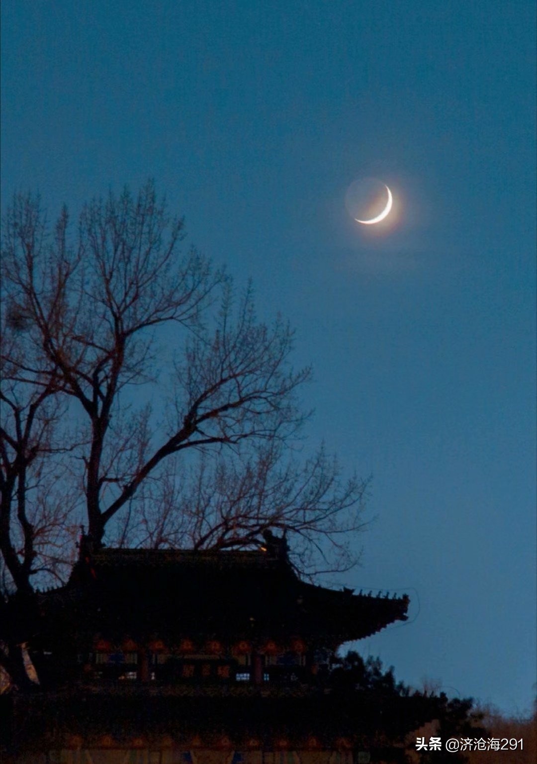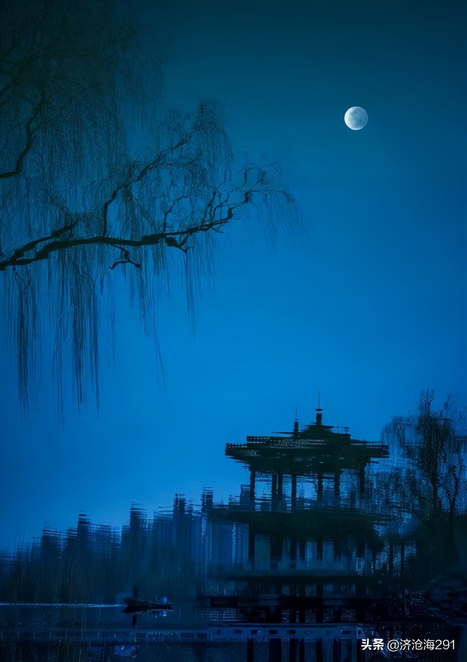 鸟鹊衔来细小的树枝,在高高的树上筑起了鹊巢,斜月挂在墨蓝的天幕上,清辉泻下,将纤细的小草镀上了一层寒冷的银光。