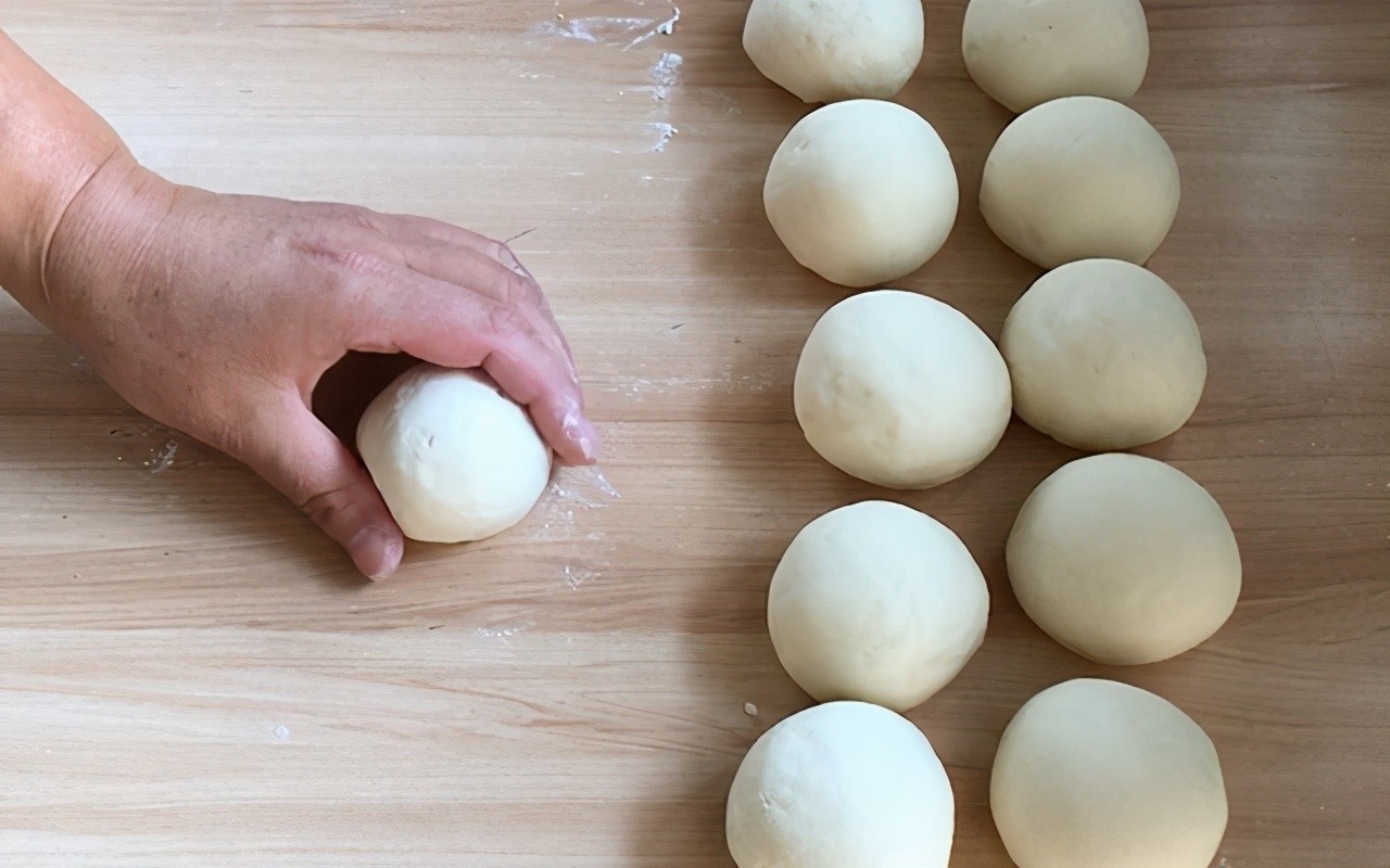 第七步:把发酵好的面团取出来揉匀排气,然后搓条揪剂子,再次把剂子搓揉均匀,这样吃起来更劲道;最后揉成馒头状备用。