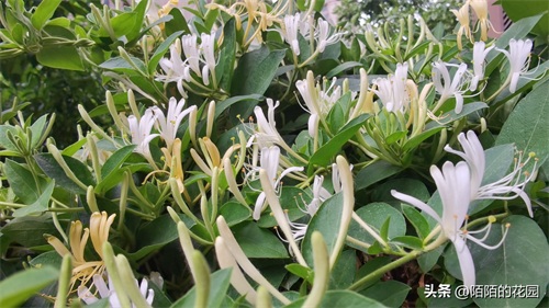 金银花又称为忍冬,属于半常绿爬藤植物,花语是真爱,它的花通常都是一蒂二花,成双成对的开花的,就好像是鸳鸯对舞,因此得此花语。