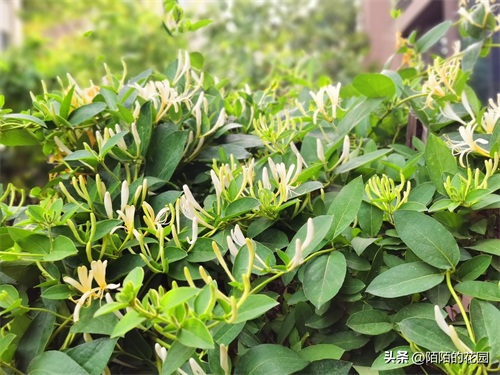 金银花初开时为纯白色,随着时间的推移,渐渐转变为淡黄色,两色花开一样香,黄的似金,白的若银,金银花由此得名。